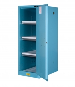 用于存放腐蝕品的Justrite藍色鋼制安全柜所有型號均具有與Justrite易燃液體安全柜相同的性能,包括雙壁結構、雙排氣口、地線接口、可調擱板、防漏底框、三點聯動式自鎖門和調平支腳。為具有耐強腐蝕性化學品的性能,酸類安全柜還在鍍鋅鋼擱板上安裝了聚乙烯底盤,并在底部盛漏槽中加設了獨立的聚乙烯襯套。襯套可拆除,便于清理滴落和泄漏的液體。內外壁全部采用環氧粉末烤漆涂層,具有更強的耐化學腐蝕性。該涂料經過專門配制,能夠耐受實驗室常用的酸、堿和溶劑。通過FM認證。