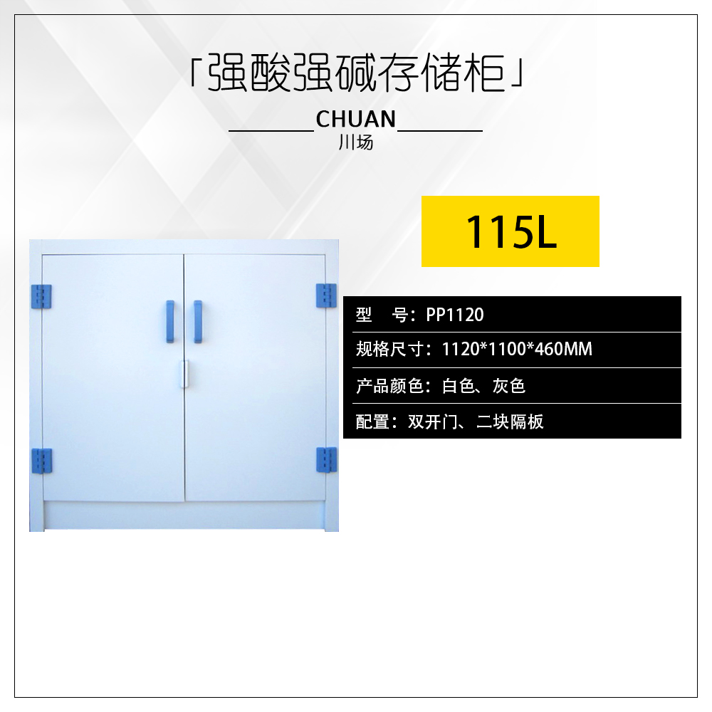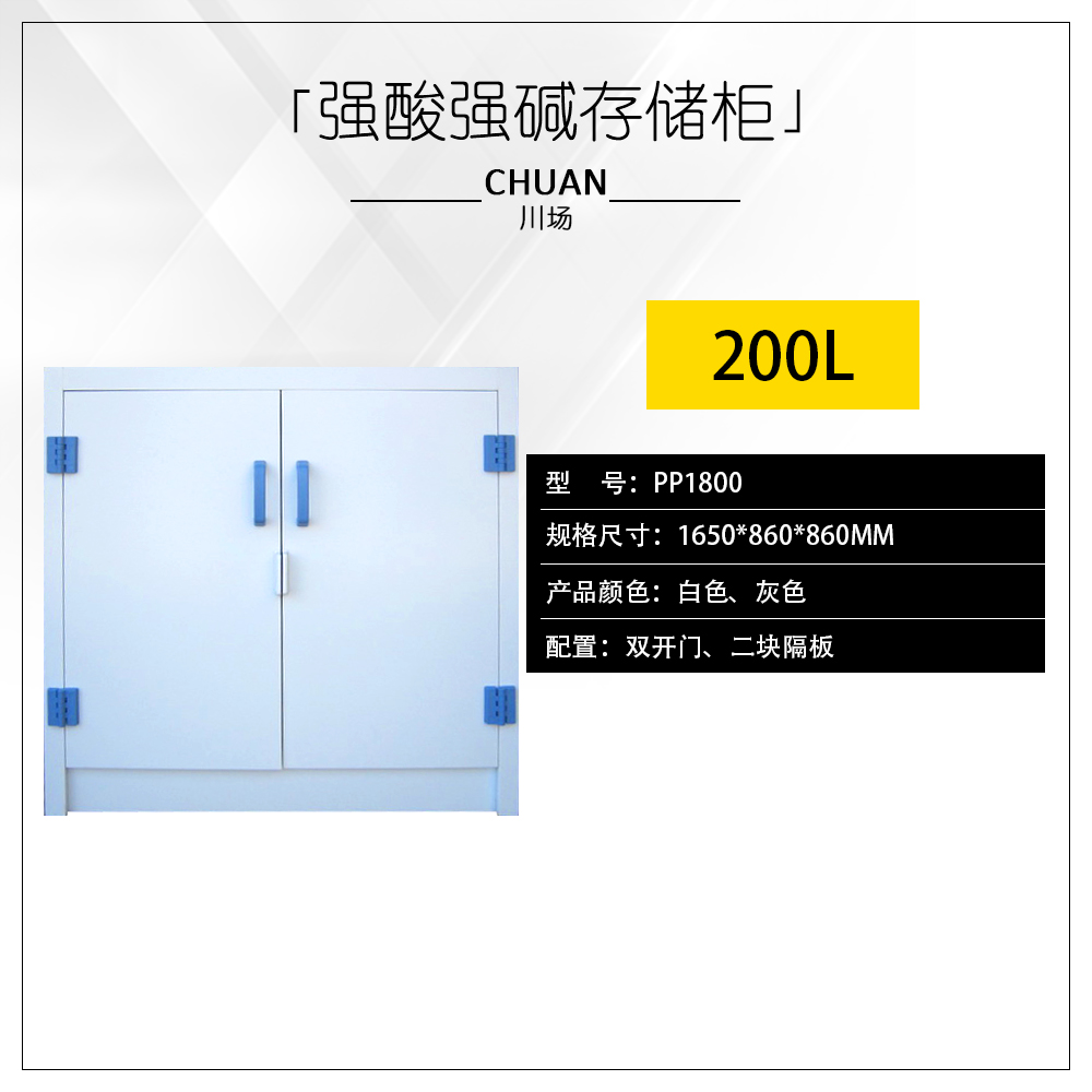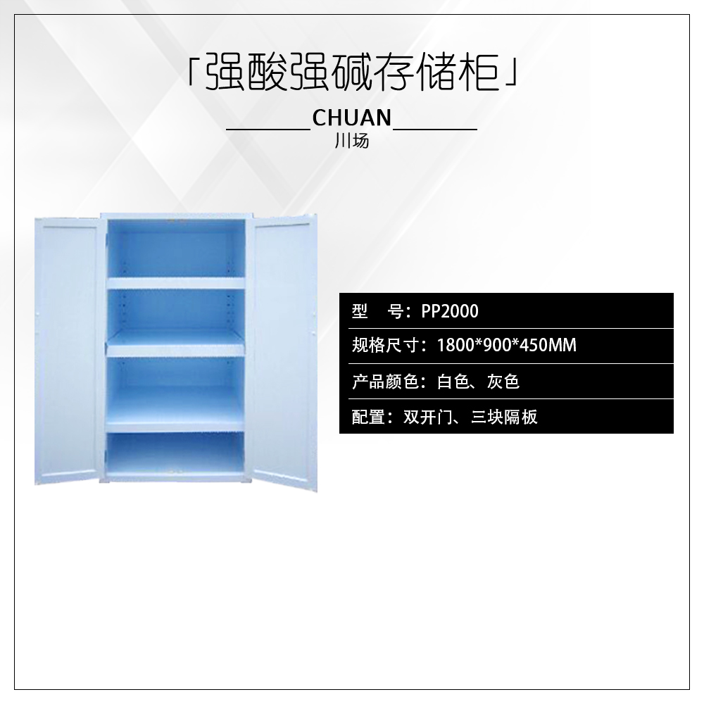 一 、 川場(chǎng)實(shí)業(yè)生產(chǎn)對(duì)于具有低腐蝕性的化學(xué)品物質(zhì)(例如硫酸、鹽酸、硝酸、強(qiáng)堿化學(xué)品物質(zhì)等等),應(yīng)該選擇白色PP聚丙烯強(qiáng)腐蝕性化學(xué)品防火安全儲(chǔ)存柜系列產(chǎn)品,可以選擇不同規(guī)格的白色PP、灰色PP聚丙烯抗抗強(qiáng)腐蝕性。
